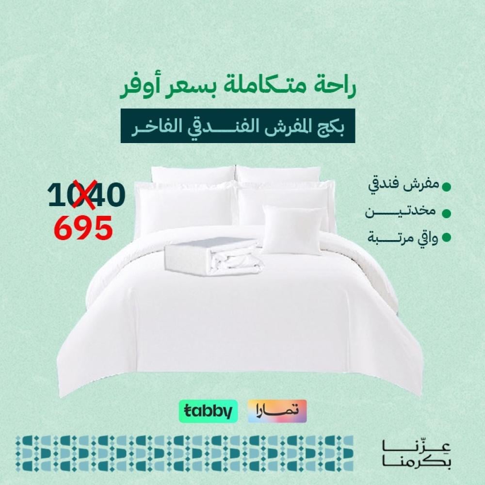 احصل على بكج المفارش الفندقية الفاخرة الآن واستمتع بنوم مريح ورفاهية لا تُضاهى.